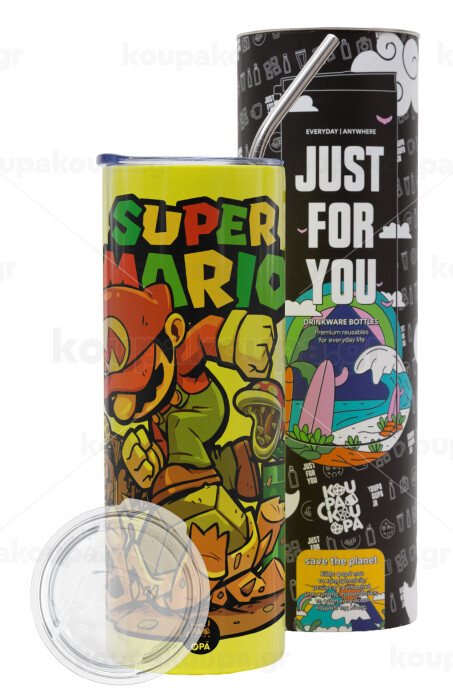 Super mario Jump, Neon Yellow Travel Tumbler, with metal straw (Stainless steel 304 Food grade, BPA free, 600ml)