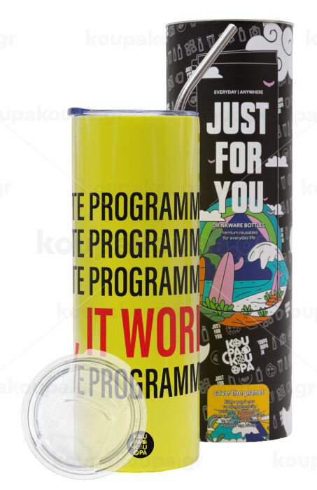 I hate programming!!!, Neon Yellow Travel Tumbler, with metal straw (Stainless steel 304 Food grade, BPA free, 600ml)