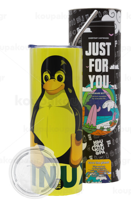 Linux, Neon Yellow Travel Tumbler, with metal straw (Stainless steel 304 Food grade, BPA free, 600ml)