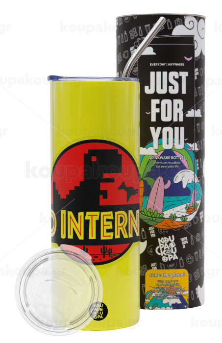 No internet, Neon Yellow Travel Tumbler, with metal straw (Stainless steel 304 Food grade, BPA free, 600ml)