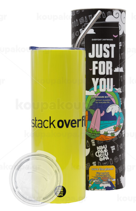 StackOverflow, Neon Yellow Travel Tumbler, with metal straw (Stainless steel 304 Food grade, BPA free, 600ml)