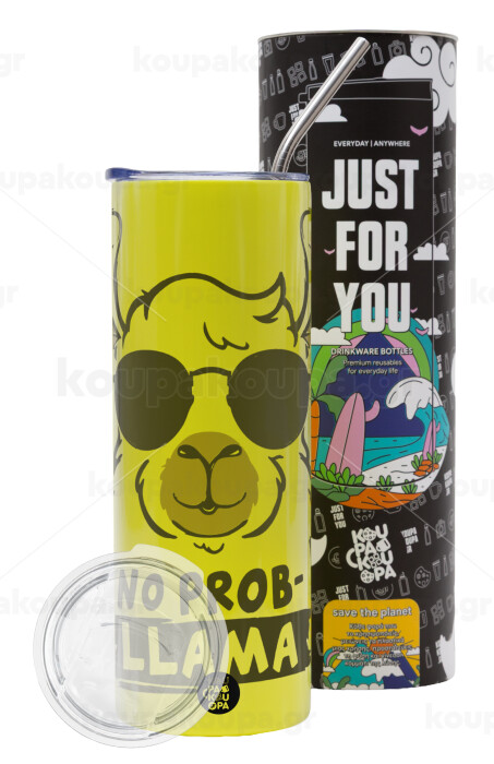 No Prob Llama, Neon Yellow Travel Tumbler, with metal straw (Stainless steel 304 Food grade, BPA free, 600ml)