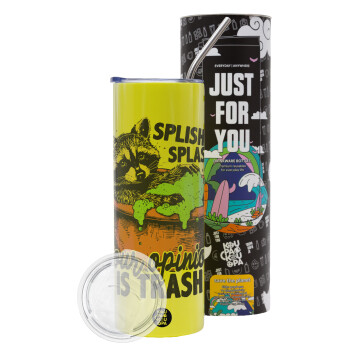 Splish splash your opinion is trash, Neon Yellow Travel Tumbler, with metal straw (Stainless steel 304 Food grade, BPA free, 600ml)