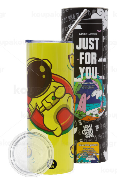 Μικρός αστροναύτης θάλασσα, Neon Yellow Travel Tumbler, with metal straw (Stainless steel 304 Food grade, BPA free, 600ml)