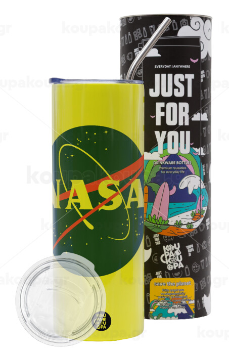 Nasa, Neon Yellow Travel Tumbler, with metal straw (Stainless steel 304 Food grade, BPA free, 600ml)
