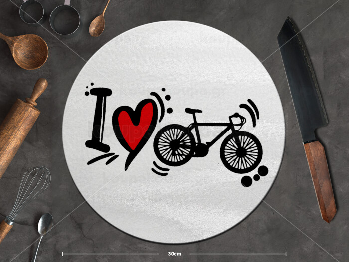 I love my bike, Επιφάνεια κοπής γυάλινη στρογγυλή (30cm)