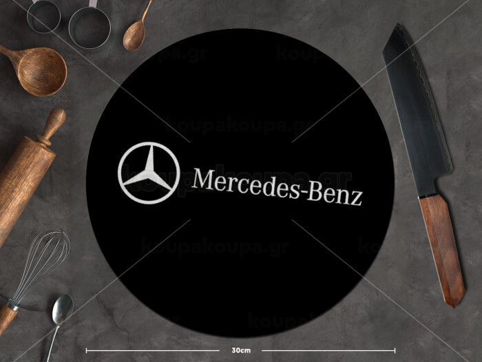 Mercedes small logo, Επιφάνεια κοπής γυάλινη στρογγυλή (30cm)