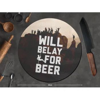 Will Belay For Beer, Επιφάνεια κοπής γυάλινη στρογγυλή (30cm)