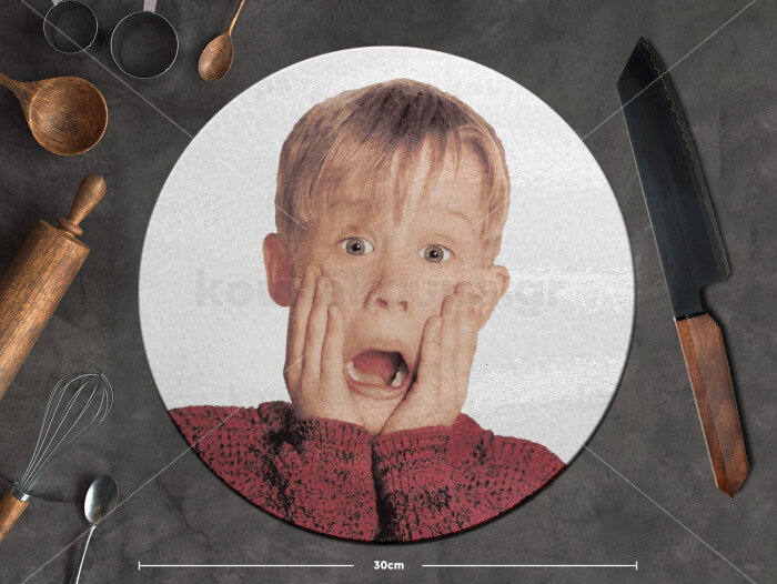 Μόνος στο σπίτι Kevin McCallister Shocked, Επιφάνεια κοπής γυάλινη στρογγυλή (30cm)