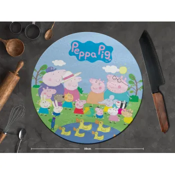 Peppa pig Family, Επιφάνεια κοπής γυάλινη στρογγυλή (30cm)