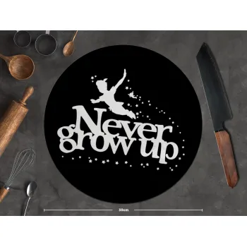 Peter pan, Never Grow UP, Επιφάνεια κοπής γυάλινη στρογγυλή (30cm)