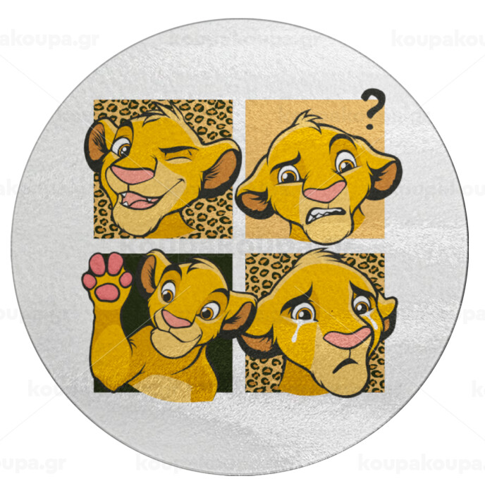 Simba, lion king, Επιφάνεια κοπής γυάλινη στρογγυλή (30cm)
