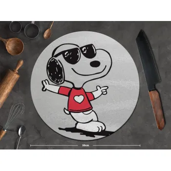 Snoopy καρδούλα, Επιφάνεια κοπής γυάλινη στρογγυλή (30cm)