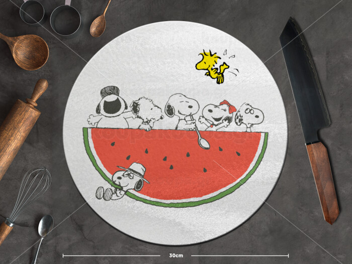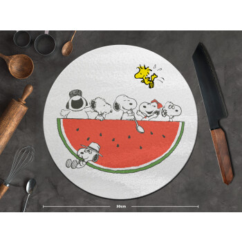 Snoopy summer, Επιφάνεια κοπής γυάλινη στρογγυλή (30cm)