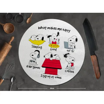 Snoopy what makes my happy, Επιφάνεια κοπής γυάλινη στρογγυλή (30cm)