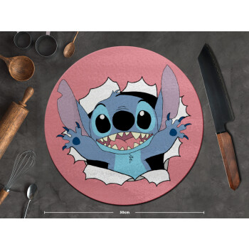 Stitch hello!!!, Επιφάνεια κοπής γυάλινη στρογγυλή (30cm)