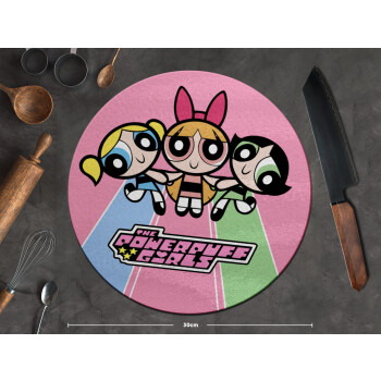 The powerpuff girls , Επιφάνεια κοπής γυάλινη στρογγυλή (30cm)
