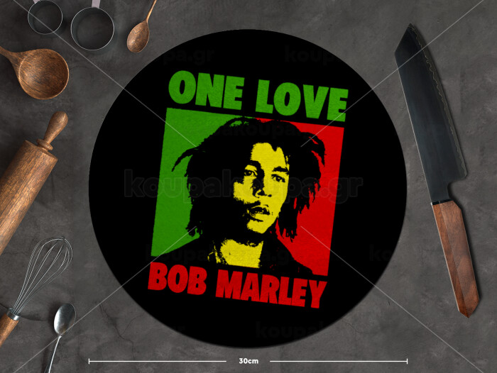Bob marley, one love, Επιφάνεια κοπής γυάλινη στρογγυλή (30cm)