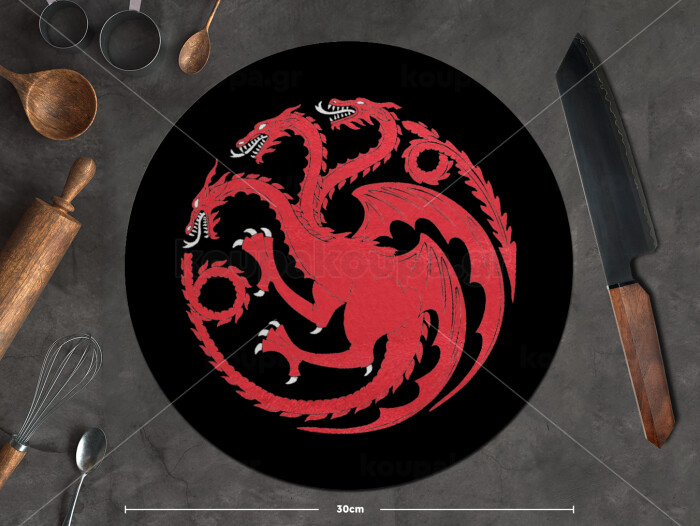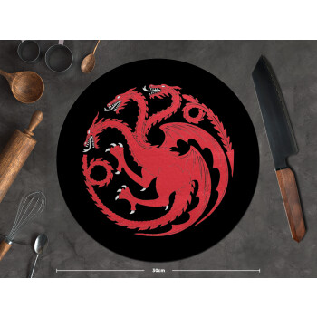 GOT House Targaryen, Fire Blood, Επιφάνεια κοπής γυάλινη στρογγυλή (30cm)