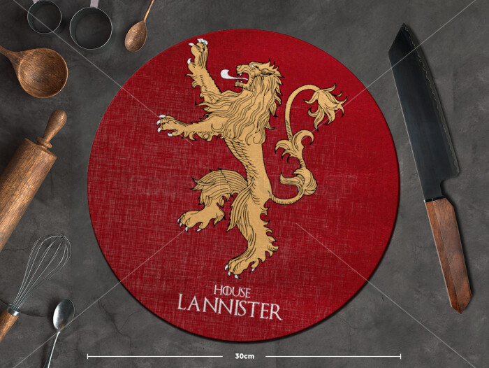 House Lannister GOT, Επιφάνεια κοπής γυάλινη στρογγυλή (30cm)