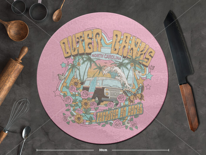 Outerbanks paradise on earth, Επιφάνεια κοπής γυάλινη στρογγυλή (30cm)