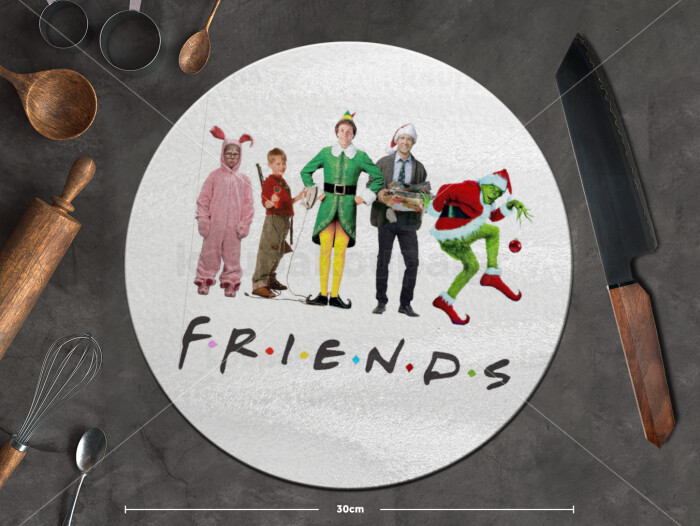 Christmas FRIENDS, Επιφάνεια κοπής γυάλινη στρογγυλή (30cm)