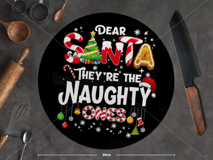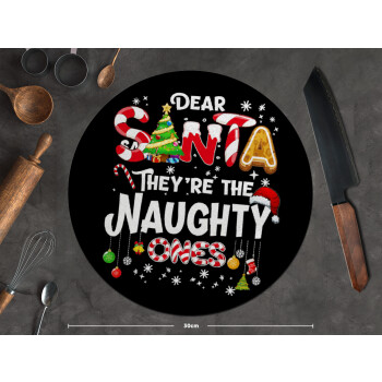 Dear santa they're the naughty , Επιφάνεια κοπής γυάλινη στρογγυλή (30cm)