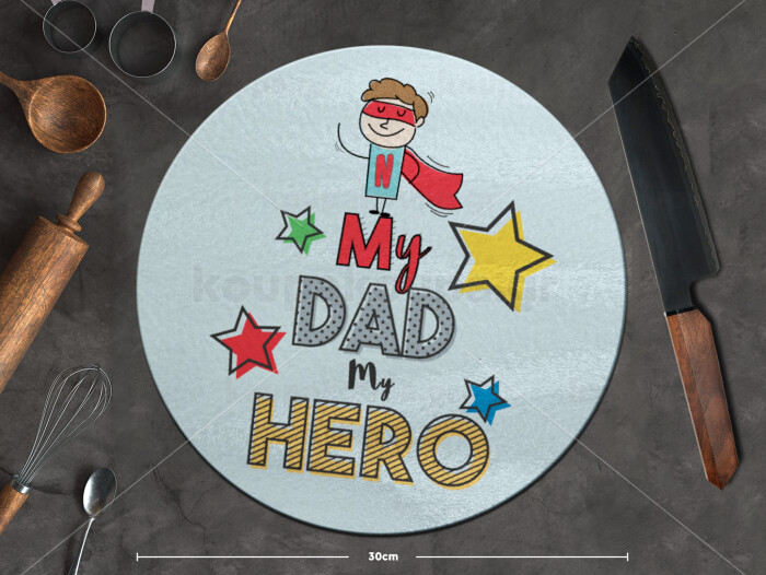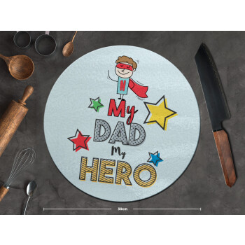 My Dad, my Hero!!!, Επιφάνεια κοπής γυάλινη στρογγυλή (30cm)