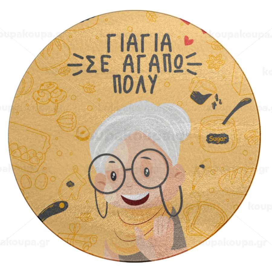 Γιαγιά σε αγαπώ πολύ!, Επιφάνεια κοπής γυάλινη στρογγυλή (30cm)