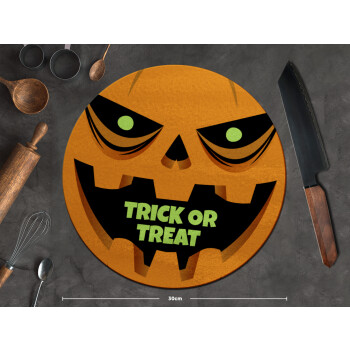Halloween trick or treat Pumpkins, Επιφάνεια κοπής γυάλινη στρογγυλή (30cm)