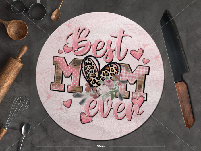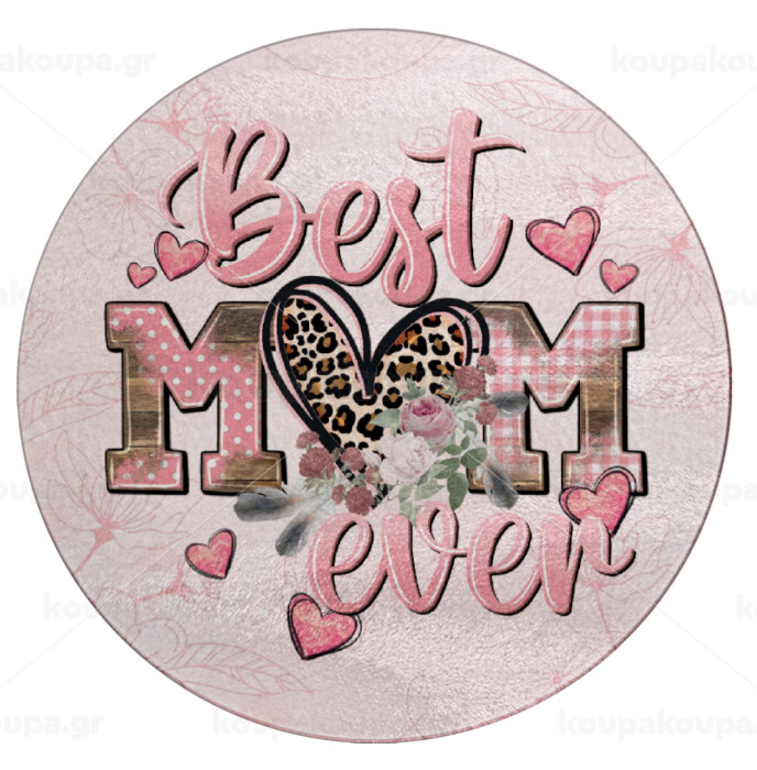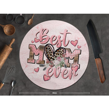 Best mom ever Mother's Day, Επιφάνεια κοπής γυάλινη στρογγυλή (30cm)