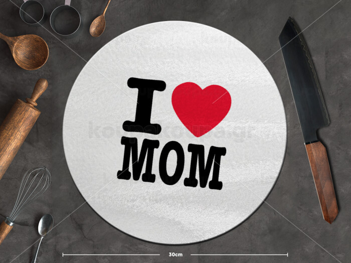 I LOVE MOM, Επιφάνεια κοπής γυάλινη στρογγυλή (30cm)
