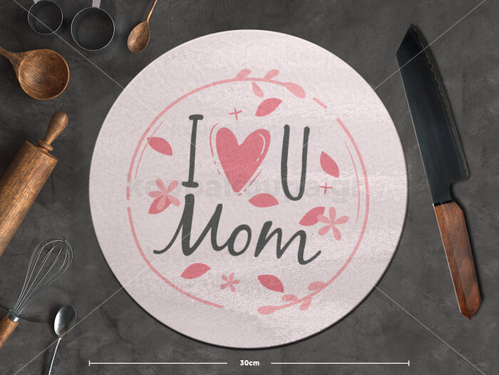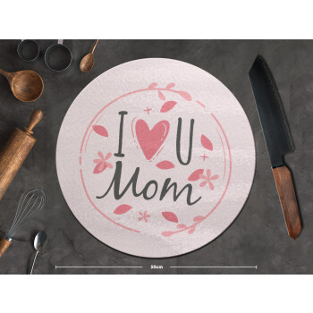 I Love you Mom pink, Επιφάνεια κοπής γυάλινη στρογγυλή (30cm)