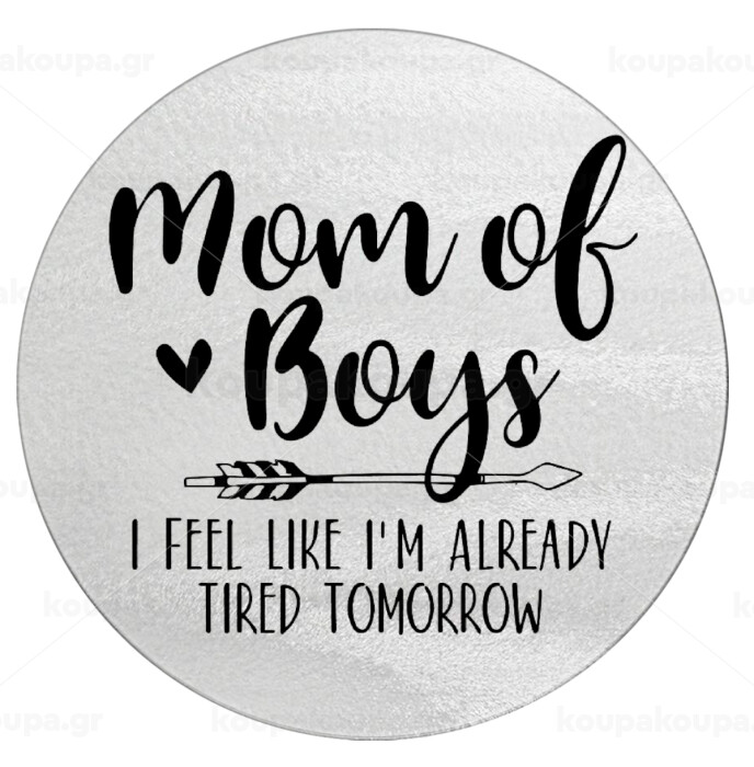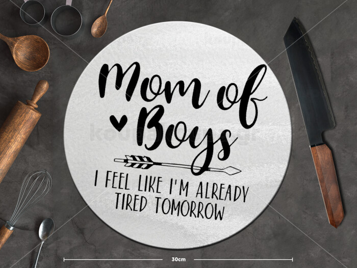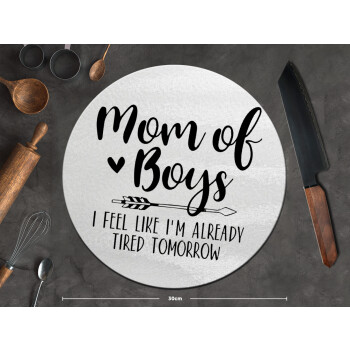 Mom of boys i feel like im already tired tomorrow, Επιφάνεια κοπής γυάλινη στρογγυλή (30cm)