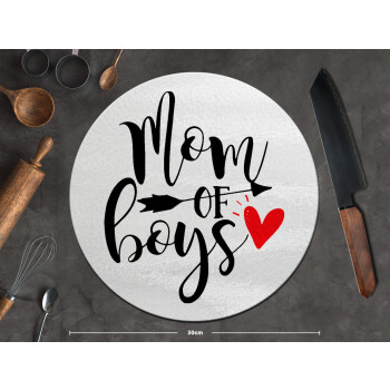 Mom of boys, Επιφάνεια κοπής γυάλινη στρογγυλή (30cm)