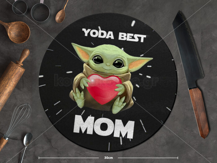 Yoda Best mom, Επιφάνεια κοπής γυάλινη στρογγυλή (30cm)