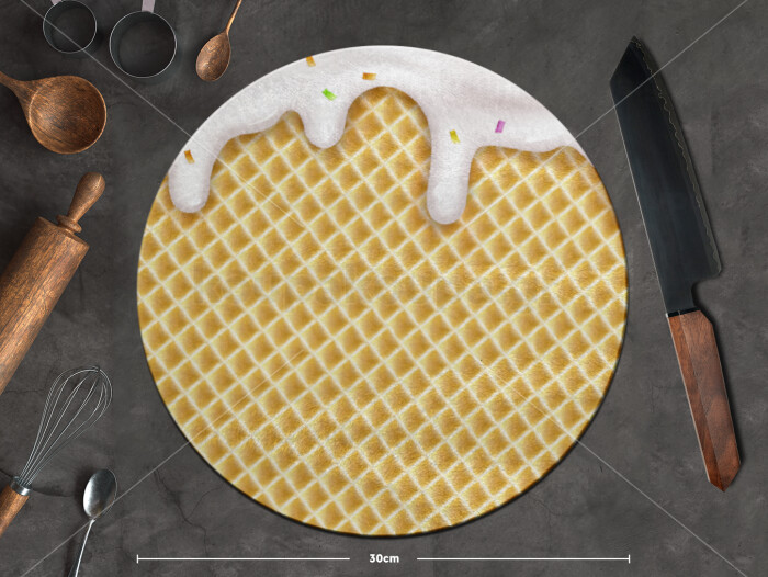 Glass cutting surface suitable for protecting the kitchen counter and dining table. Great hygiene because it does not have pores like wooden surfaces, it cleans easily. Contains silicone droplets to not come into direct contact with the surface of the counter.