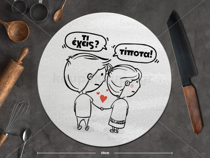 Τι έχεις? Τίποτα!, Επιφάνεια κοπής γυάλινη στρογγυλή (30cm)