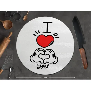 comics hands love, Επιφάνεια κοπής γυάλινη στρογγυλή (30cm)