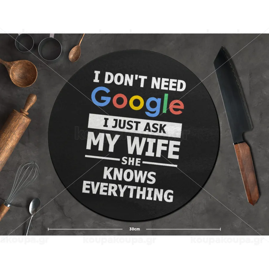 I don't need Google, just ask my WIFE, Επιφάνεια κοπής γυάλινη στρογγυλή (30cm)