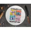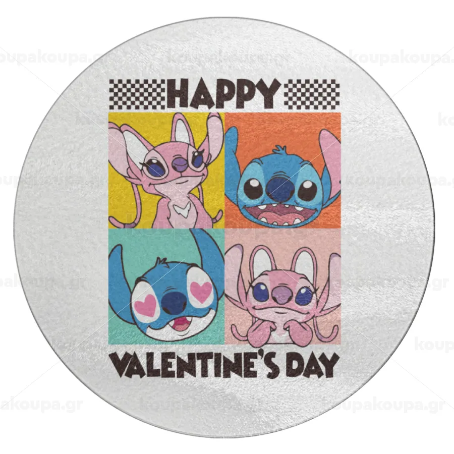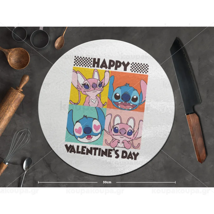 Lilo & Stitch Happy valentines day, Επιφάνεια κοπής γυάλινη στρογγυλή (30cm)