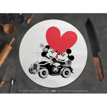 Mickey & Minnie love car, Επιφάνεια κοπής γυάλινη στρογγυλή (30cm)