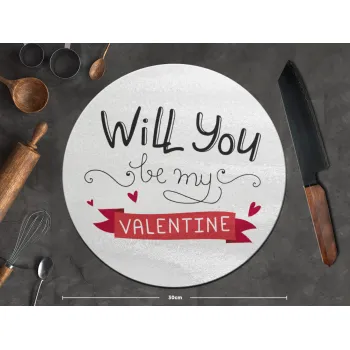 Will you be my Valentine???, Επιφάνεια κοπής γυάλινη στρογγυλή (30cm)