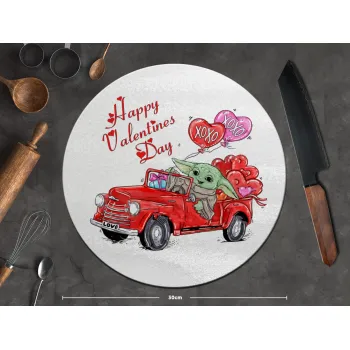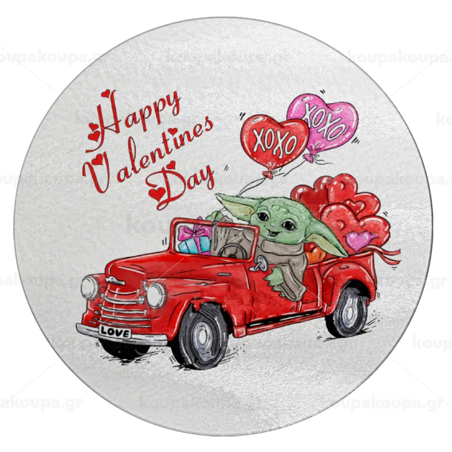 Yoda, happy valentines day (xoxo), Επιφάνεια κοπής γυάλινη στρογγυλή (30cm)