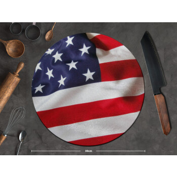 USA Flag, Επιφάνεια κοπής γυάλινη στρογγυλή (30cm)