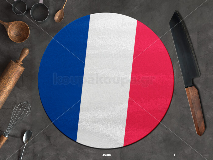 France flag, Επιφάνεια κοπής γυάλινη στρογγυλή (30cm)