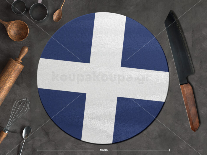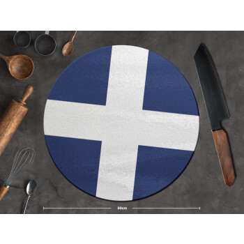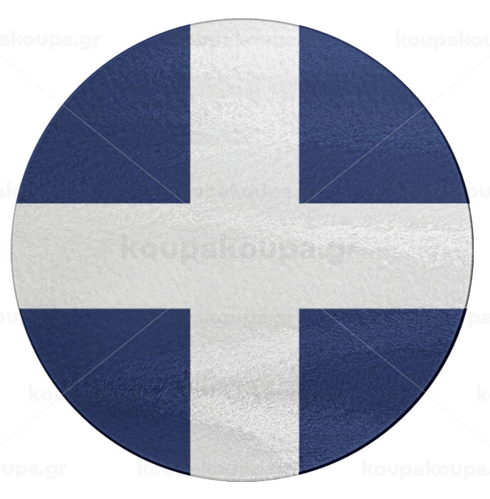 Ελληνική σημαία, Hellas, Επιφάνεια κοπής γυάλινη στρογγυλή (30cm)