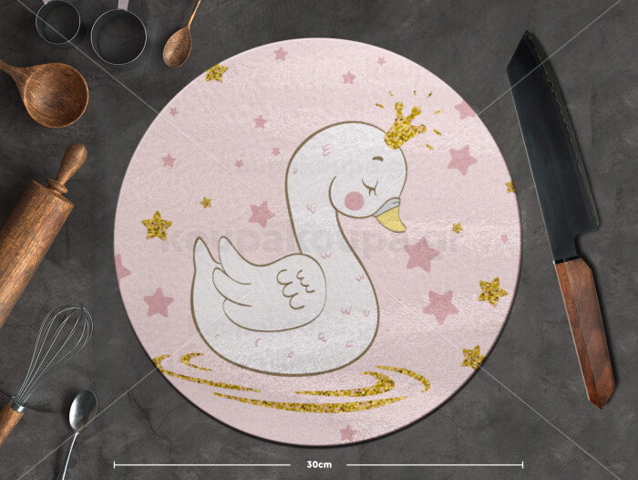 Crowned swan, Επιφάνεια κοπής γυάλινη στρογγυλή (30cm)