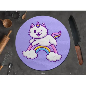 Cute cat unicorn, Επιφάνεια κοπής γυάλινη στρογγυλή (30cm)