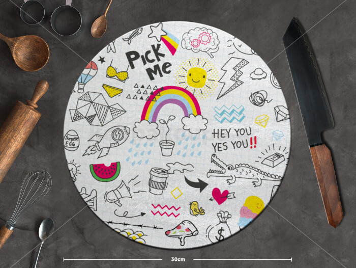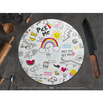 Doodle kids, Επιφάνεια κοπής γυάλινη στρογγυλή (30cm)